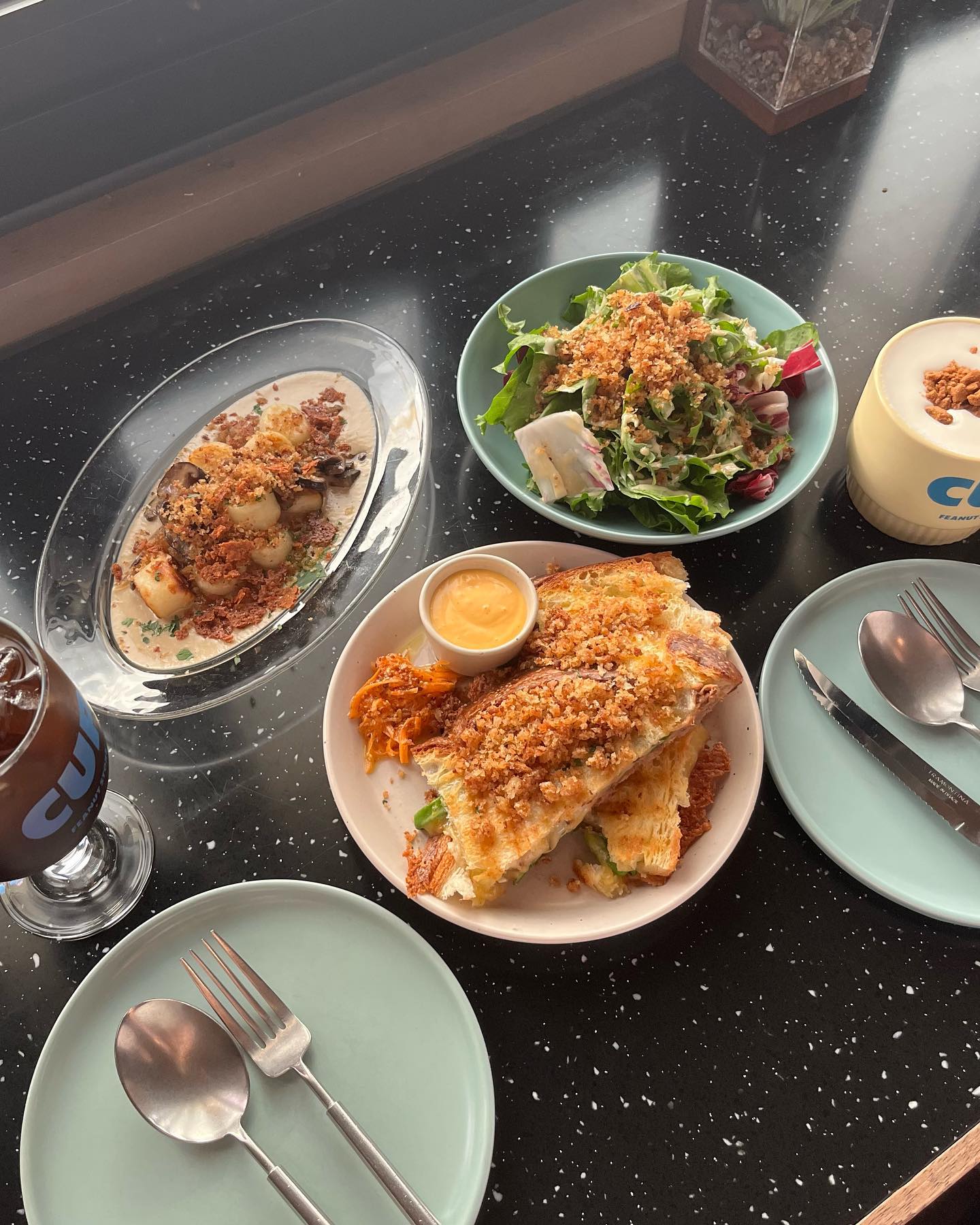 It is a good place to have a leisurely conversation while enjoying various brunch dishes such as gnocchi, pasta, and salad. In addition to food and beverages, there is also a cute accessory shop inside the store, making it a good cafe to enjoy a variety of things.