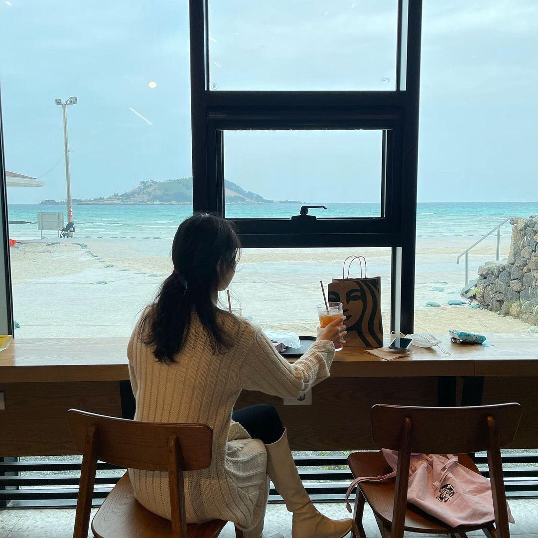 Starbucks with a view of Hyeopjae Beach in front